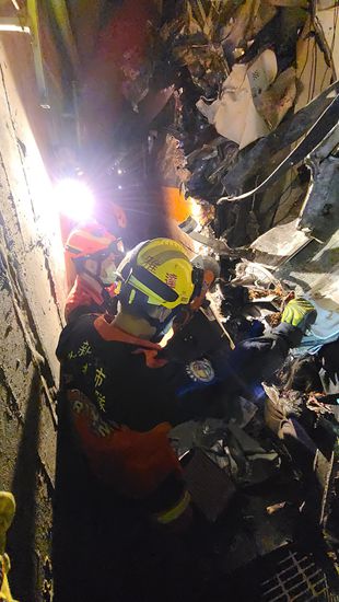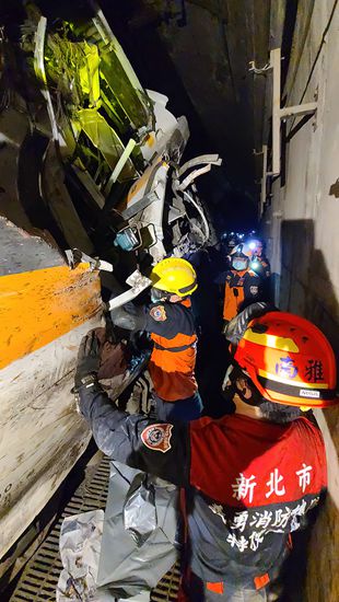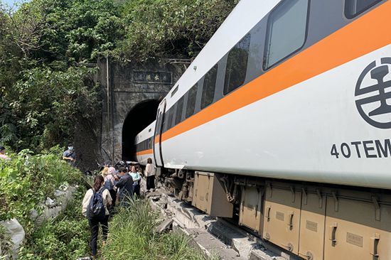 太鲁阁号列火撞到工程车后再冲进隧道。