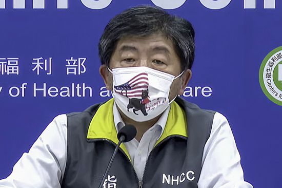 卫福部长陈时中戴上“战猫口罩”主持记者会引发争议。