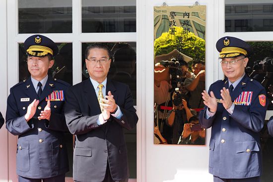 “内政部长”除国勇(中)处要求警察注记藏有球棒私家车政策引发争议。