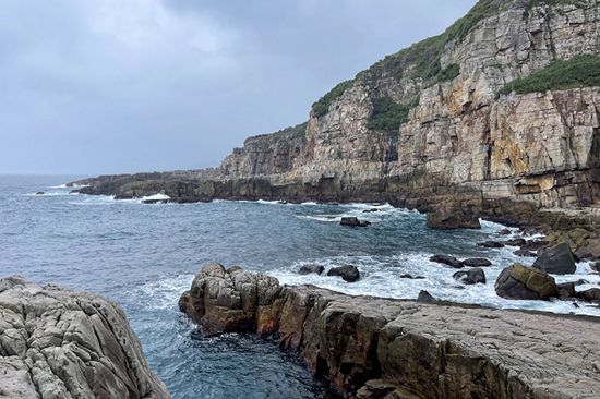一大清早抵达停车场,永远都是满满的车,只剩寥寥可数的车位。带路的朋友戏称,车主全都是不回家的男人。原来往下爬就是矶钓胜地,果真都是半夜就跑来海边钓鱼的人。钓客众多,下去海边的路并不困难,稍难处早已有人架好梯子和绳索,只要不太惧高,都可以安全迅速地下去。龙洞岬分为南岬和北岬,初入门者适合先从南岬尝试,从西灵岩寺进入,也可以走龙洞南口海洋公园,北岬则是从和美小学开始。