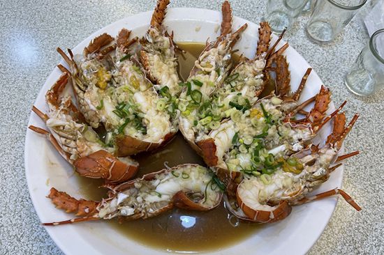 说到海边,当然离不开海鲜。钓客多半是为兴趣而钓,甚至钓到就当场放生。但是如果真的看中他的斩获,有些钓客也愿意出售。若想要立刻大饱口福,还是去餐厅最方便。海园是鼻头角一带的知名海鲜餐厅,保证提供最新鲜高质量的当日渔获。当天我们吃到肉质饱满的虾子,每人半只龙虾,一只肥厚的九孔,清蒸海鱼,炒蛤,生鱼片,凉拌海菜,炒海鲜面,炒花枝,生花枝,吃到撑,一人只需新台币1200元,非常超值。而无菜单交给店家调配的起价就是1200元一人,如果升级到1400、1600甚至2000,真不知会吃到多少好料。重点是烹调简单讲究原味,没有过多调味,重点放在食材的绝佳品质上面,这才是吃海鲜的真谛。