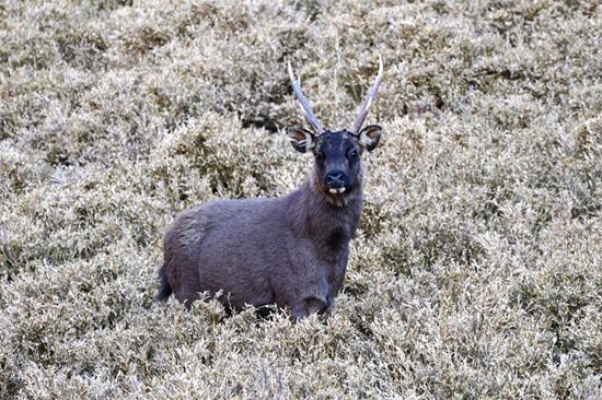 南湖北山之后是由五座山峰连绵组成的“五岩峰”,这段路要走在棱线上,旁边便是悬崖峭壁,而且因为地形关系,风势经常非常强劲,加上强烈裸露感,对惧高的人构成心理障碍。但是其实只是惊而不险,很多地方都设有绳索防护,只要小心前行就很安全。毕竟能来南湖大山的人都有三两三,五岩峰并不难爬,不过回程时遇到狂风大作,一些比较娇小的女生真的会被吹到站不稳脚步,要暂时蹲下躲避强阵风。五岩峰之后,从南湖北峰下南湖圈谷的碎石坡则是另一道关卡,在短短的800公尺内陡下200公尺高度。下到美丽的圈谷,看到一只漂亮的公水鹿站在不远处好奇张望,仿佛在迎接新到来的宾客,看到他可爱的模样,顿时觉得疲累消散。