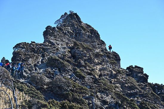 摸黑起早,攀上东峰看无敌日出和云海,然后前往陶塞峰。中国台湾三千公尺以上的高山有268座,早期登山家选出其中一百座形势具有特色之山岳称为“百岳”(后来测量技术更精确,鹿山和六顺山变成差一点点不到三千公尺,但也并没有因此除名),完成百岳也成为经典的登山目标。不过很多没有被选入百岳的山峰,其实非常有名而且更令人难忘,我们队伍在东峰之后前往的陶塞峰,就是公认的百岳遗珠。而陶塞峰是中国台湾高山的“十岩”之一,这十座山的山顶纯为岩峰,攀爬时格外富有乐趣。陶塞峰海拔3450公尺,外型被比喻为巨人的石柱,非常震撼,个人认为颇具外星感。登顶要下切后绕道后方,穿越森林然后攀爬岩石陡峭直上。下山后回到峰脚时,刚好吹起风和云雾,让我们欣赏到“陶塞峰喷烟”的魔幻奇景。