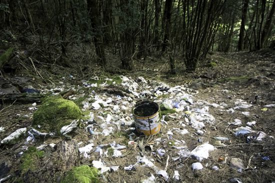没公德心的登山客让山林变成垃圾场。