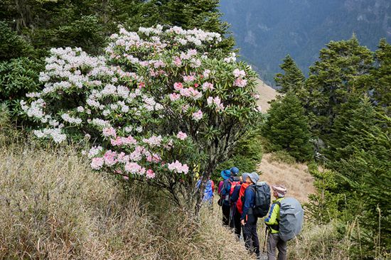 每年三四月海拔3886公尺的雪山高山杜鹃盛开。