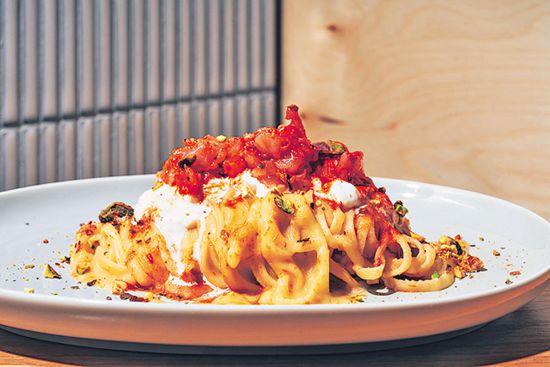 餐厅的核心理念Itameshi,即用日本风格演绎意大利料理,提供以食材为本的用餐体验。菜单主打每日手工制作的新鲜意粉,搭配时令菜肴,风味轻盈而层次丰富。