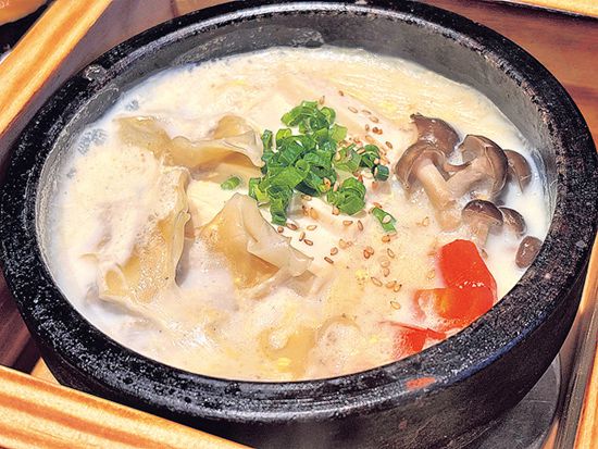 “月影下的宴席”北海道和牛云吞豆乳石锅。