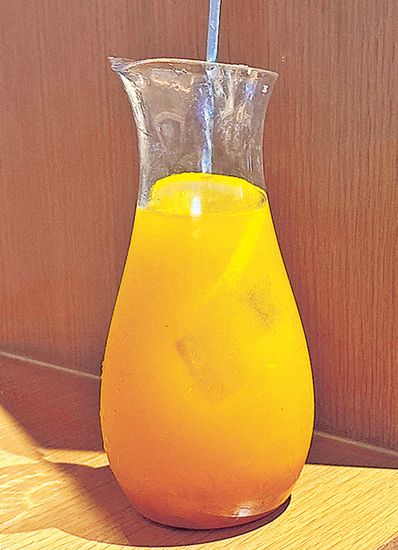 北海道向来盛产帆立贝,今次菜单就限量推出“虾夷之余晖”,即辛味北海道帆立贝,入口时口感厚实带鲜味,配上微辣酱汁点缀,颇具层次。餐单同时推出芒果香橙茉莉花茶黄金特饮($48),香橙的酸与芒果的甜巧妙结合,搭配茉莉花茶,优雅馥郁的茉莉花香气与清新果香相互辉映,微酸带甜,解去吃烧肉的油腻感。