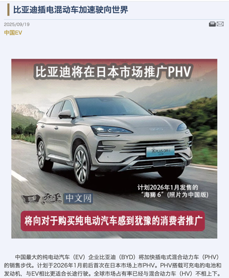 ▲比亚迪插混加快向海外市场铺货(据日经中文网)