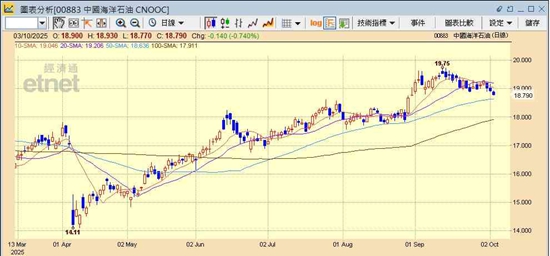 据报石油输出国组织及其盟友(OPEC+)将在周日(5日)会议上决定11月再增产每日13.7万桶,市场对供应过剩的忧虑持续加剧,国际油价连日下跌,纽约期油昨日(2日)再跌2.1%,收报每桶60.48美元;伦敦布伦特期油跌1.9%收报每桶64.11美元,为4个月以来最低收市价。“三桶油”股价近日亦随油价走弱,其中中石油(00857)及中海油(00883)股息率已达7厘,或可趁机吸纳。