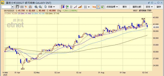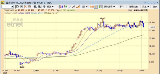 麦嘉嘉认为,濠赌股的中线投资价值在于其结构性改变,即从过往由博彩收入带动,变为现在由非博彩收入主导,澳门政府也希望到2028年非博彩的GDP占比可进一步拉高,近期澳门博企的“演唱会经济”也反映其成功转型模式,而现在新一轮娱乐设施的投资周期,以及澳门博彩概念由之前“纯博彩”变成“博彩+娱乐+会展”此综合概念,令整个博彩业估值模型正在调整。因此,部分机构投资者开始见到其估值吸引,但因之前累积升幅较大,再加上黄金周初段数据不算十分理想,短期有机会先略为整固,若想中长期部署相信也要待股价再略为调整,待估值回至吸引水平,当中银娱及美高梅于结构性转型中相对领先,尤其银娱的娱乐转型,包括其“Galaxy Arena”(银河综艺馆)效应持续,至于美高梅在估值上相对吸引,市盈率暂只有14.5倍,但若下半段黄金周数据进一步转弱或未如预期,可能仍有调整压力,中长线吸纳机会要待此轮整固后才会慢慢显现出来。