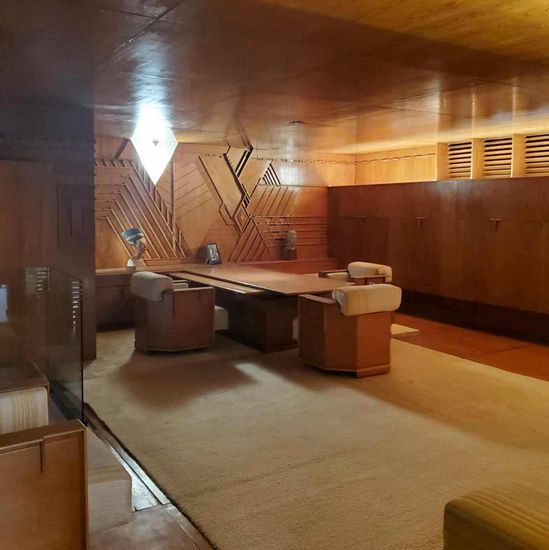 选址东伦敦Stratford区域,属近十年新发展的体育馆、时装学院、大型商场及楼盘供应重镇,回想起廿年前这里仍是环境欠佳的东伦敦旧区,今时今日可算彻底被士绅化了。这些城市发展与取舍亦被英国人视为重要历史部份,V&A East Storehouse其中一个厉害之处便还原旧建筑并呈现到观众面前,例如将1972年建成、2017年迁拆的东伦敦公屋Robin Hood Gardens局部收藏,现在连同设计师及住客的纪录片故事完整展出,散发一阵社区艺术感。另一边厢有着名建筑师Frank Lloyd Wright替零售巨头Edgar J Kaufmann设计的办公室,原始风味的柏木加上现代建筑几何元素,展示着同样于70年代的另一个花花世界。