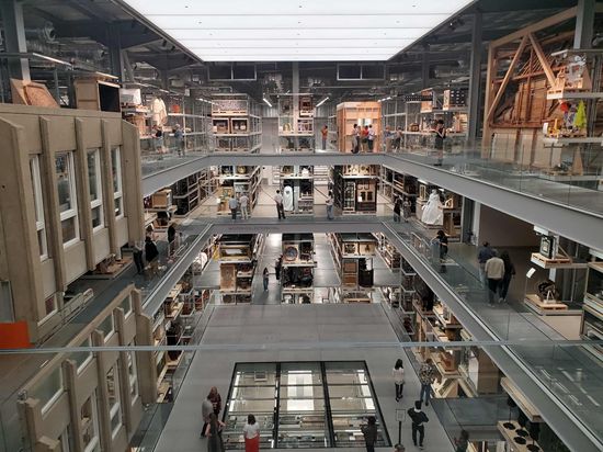 一流博物馆往往有种震撼人心的威力,同时作为各国大众文化水平的指标。正当世界顶尖的新馆建设均在提倡智能科技、彰显高级气派,几个月前才于伦敦开幕的V&A East Storehouse却反其道而行,以贴地亲民的“仓库”方式呈现文物展品,为观众提供一个近距离欣赏、随心闲逛的全开放式博物馆体验。