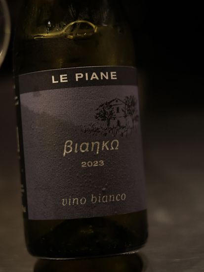 东海黄鱼–用火枪烧香蒸熟的黄鱼表皮,配上茴香苗、香芹苗和珍珠马蹄,最后淋上沙姜雪菜泡沫,吃时鱼肉细嫩,沙姜让鱼肉的鲜味加倍提升起来。配酒有2023年的意大利红酒。