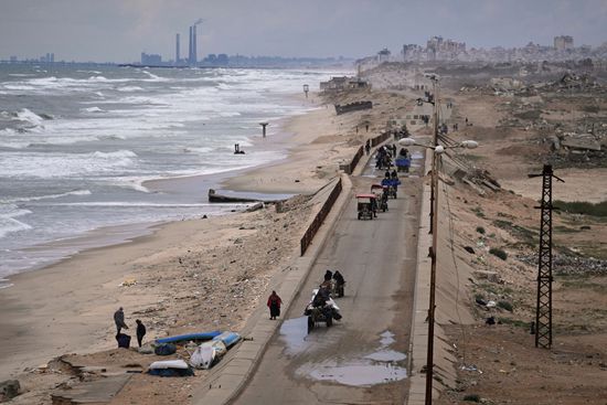 现时犹如废墟的加沙海滨,在美国地产商眼中,将成为闪亮的度假胜地。(AP)